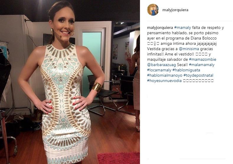 A través de su cuenta oficial de Instagram (@malyjorquiera), esta joven “Milf” se refirió, en su estilo, a lo que ocurrió en nuestro programa. “#Mamaly (como se denomina tras convertirse recientemente en madre) falta de respeto y pensamiento hablado, se portó pésimo ayer en el programa de Diana Bolocco”, escribió.