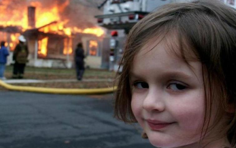 ¡Cómo no recordar esta popular imagen! La maliciosa mirada de esta pequeña mientras una casa se quema de fondo dio pauta para que ingeniosos usuarios en redes sociales crearan un sinfín de memes que rondan en la web hasta el día de hoy.