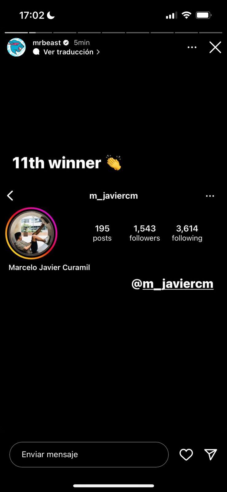 Se trata de Marcelo Curamil, quien es ingeniero constructor de Temuco, región de la Araucanía. Curamil ganó uno de los Tesla Model 3 sorteados por el influencer.