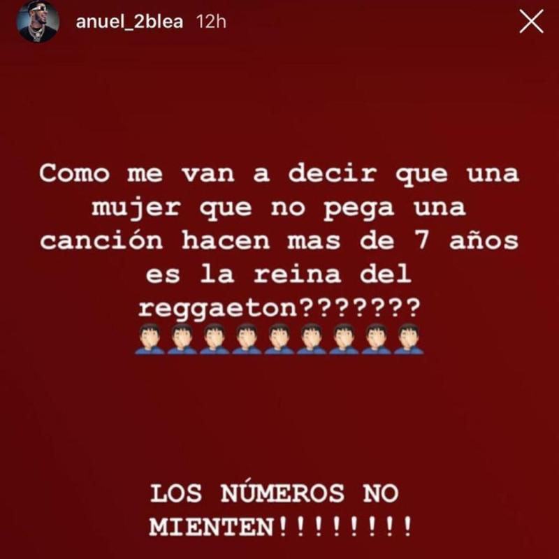 Pero lo que realmente sacó chispas fue su ácido comentario donde hizo clara alusión a Ivy Queen. "Cómo me van a decir que una mujer que no pega una canción hace más de 7 años es la reina del reggaetón, los números no mienten”, publicó en sus stories de Instagram.