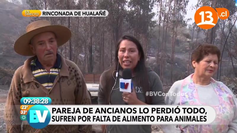 El momento se registró cuando la reportera hacía un contacto en vivo desde Rinconada de Hualañé, en la Región del Maule, donde Pérez estaba junto a una pareja de ancianos afectados por la falta de alimento para sus animales.