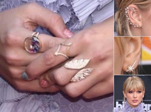 Los accesorios de Taylor son toda una tendencia, pues escogió lucir anillos casi en todos los dedos de sus manos.