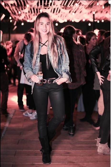 La surfista y sobrina de Emeterio Ureta con las chaquetas de moda: grandes y de mezclilla. A diferencia de Cata Vallejos usó botas, típico de mid season esto de toparse con contrastes de prendas.