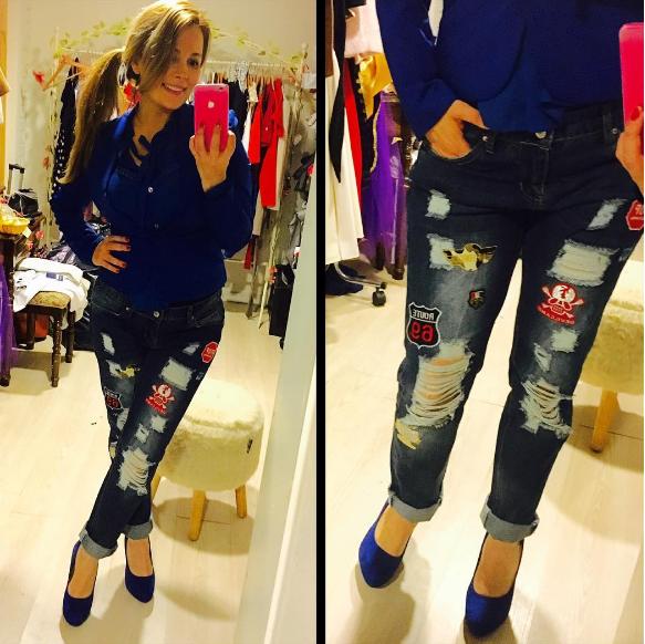 Cathy Barriga le dio un toque urbano y juvenil a su look con unos jeans boyfriend con aplicaciones de parche.