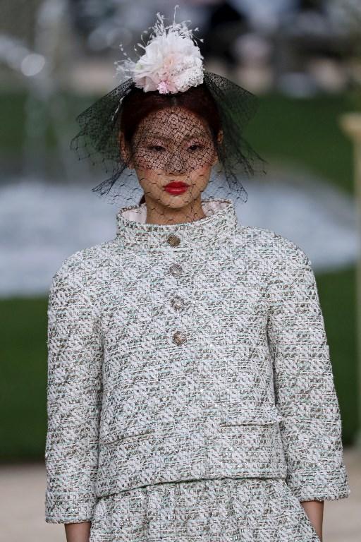 Otros diseños exhibidos responden al clásico tweed de la firma, tejido que revolucionó al mundo de la moda y el sello de Chanel.