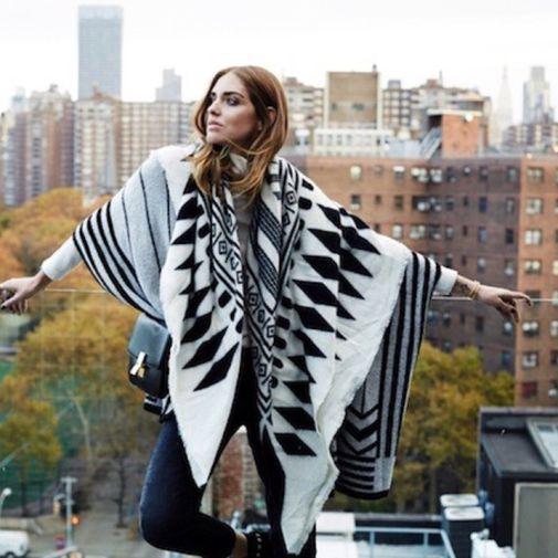 Los ponchos son tendencia este invierno, y este en el clásico blanco y negro se ve espectacular.