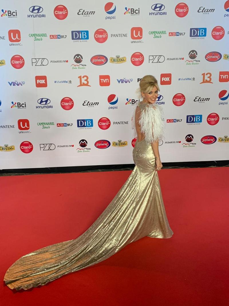 Es primera vez que la actriz argentina camina por la alfombra roja de Viña 2019, y aprovechó la oportunidad para lucir uno de los vestidos de su propia colección “China by Antolin”.