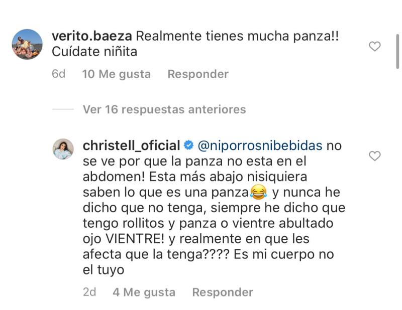 Hubo también quienes creen que la artista tiene sobre peso y se manifestaron supuestamente preocupados, a lo que Christell también respondió.