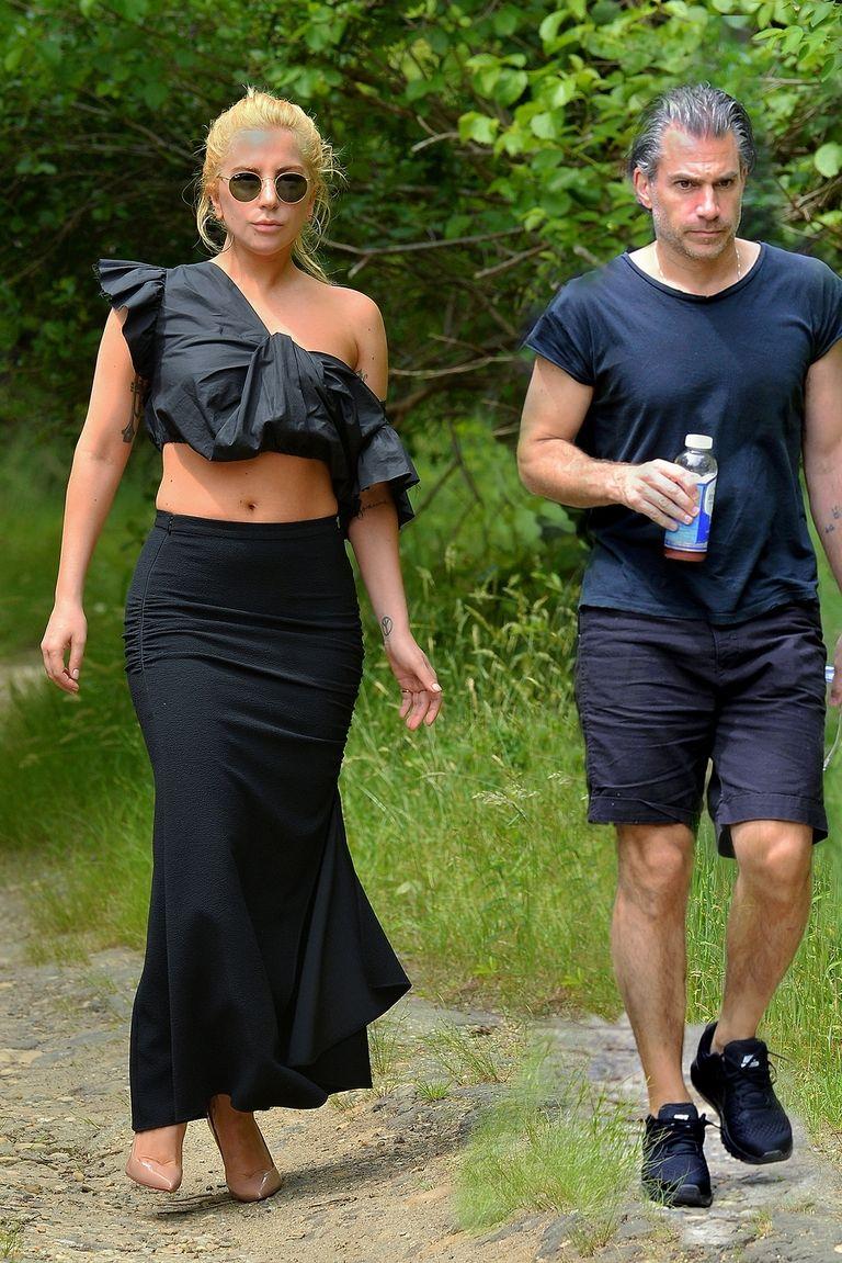 Lady Gaga salió de trekking con falda, tacos y crop top