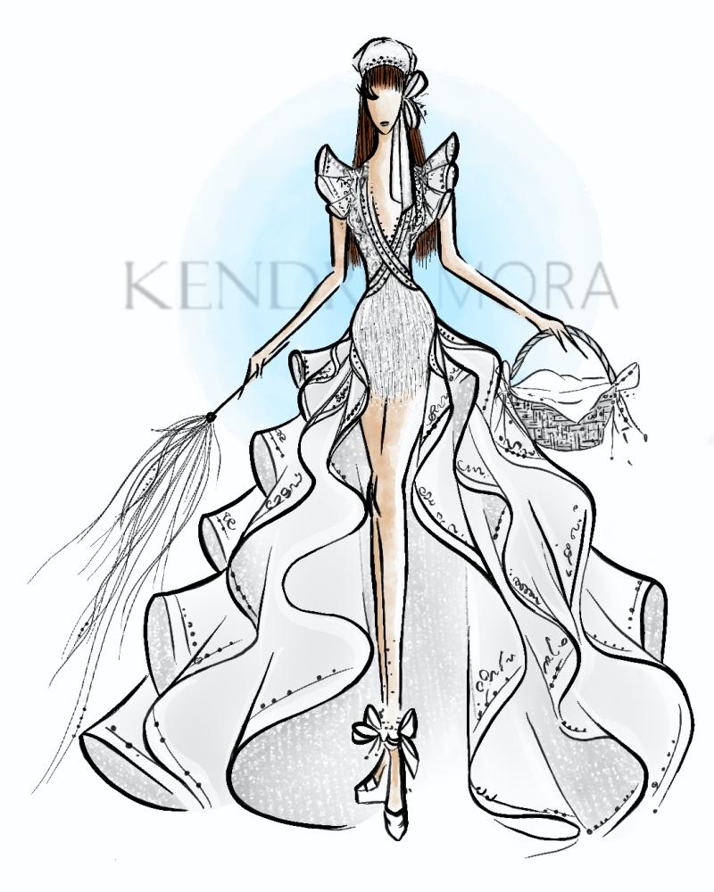 El talentoso diseñador venezolano Kendry Mora llevará a la realidad este boceto que representa a la mujer chilena poderosa y de esfuerzo, una inspiración en las famosas palomitas de La Ligua.