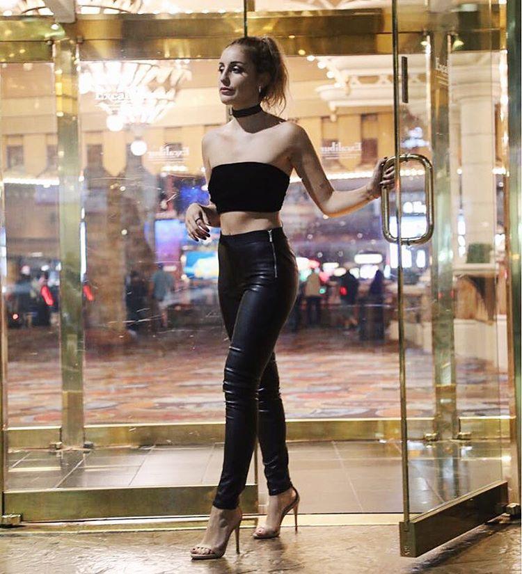 Para la noche estiliza con tacones y un pantalón de cuero que es súper llamativo, por eso la invitación es que la parte superior sea lo más sencilla posible en cuanto a texturas para no recagargar el look y lograr que se vea grotesco.