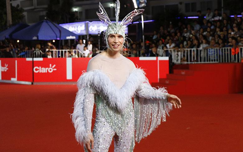 El ícono de la moda nacional llegó al casino de Viña con un particular atuendo. Flecos, brillos y transparencia fueron los elementos que el fashionista combinó para caminar por la alfombra roja.