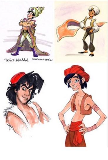 Según los bocetos originales, Aladdin iba a ser más joven de lo que fue en la película, algo así como casi un niño. Cuando decidieron que iba a tener un romance con Jasmín, fue que los creadores lo convirtieron en un joven.