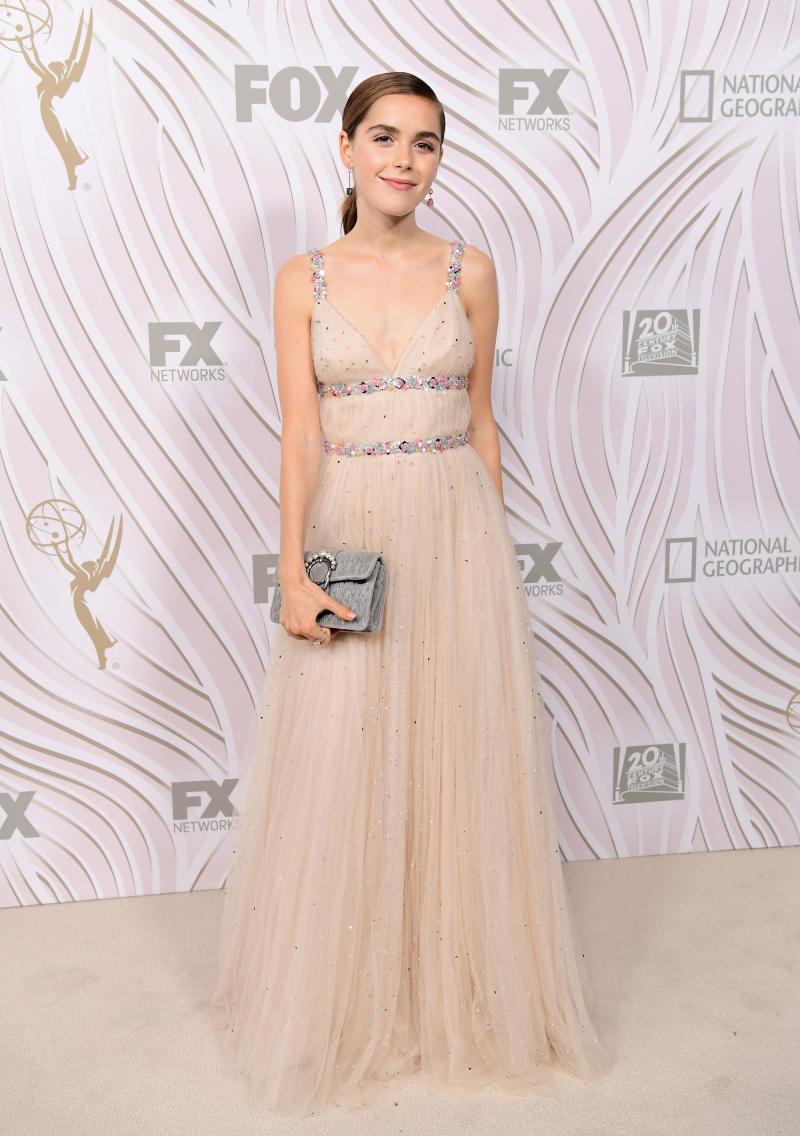 Abriendo el camino, la estrella de 13 años de "Stranger Things", Millie Bobby Brown, fascinó a la audiencia con un vestido sin tirantes de Calvin Klein cuya ancha falda la hacía parecer una princesa de cuento de hadas, algo muy lejos del terrorífico mundo de ciencia ficción que le hizo obtener una nominación a mejor actriz secundaria.