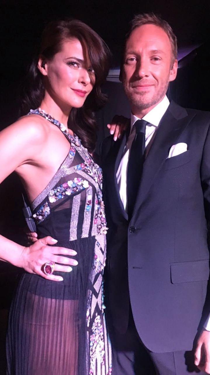 En la segunda noche, también decidió por el negro y las transparencias, pero de una forma muy distinta. El vestido, que también era de la boutique de Sarika Rodrik, era de corte halter, con transparencias en la zona del busto y en la falda, y detalles en plateado rado tanto en la parte de adelante como en la espalda.