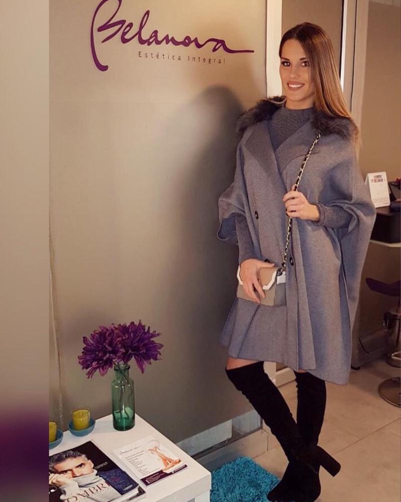 De botas over the knee, que tienen el plus de que se puede usar calectines largos debajo, un sweater gris de lana y encima un abrigo de la misma textura cuyo diseño hace alusión al poncho, pero de una forma más elegante, la joven española enseña que el frío se pasa sin perder el estilo.