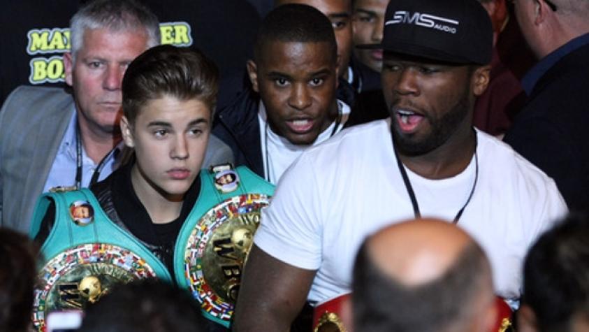 El ídolo musical juvenil se presentó como parte del equipo del boxeador norteamericano Floyd Mayweather, en Las Vegas, donde se realizó la competencia. La aparición causó furor en las redes sociales.
