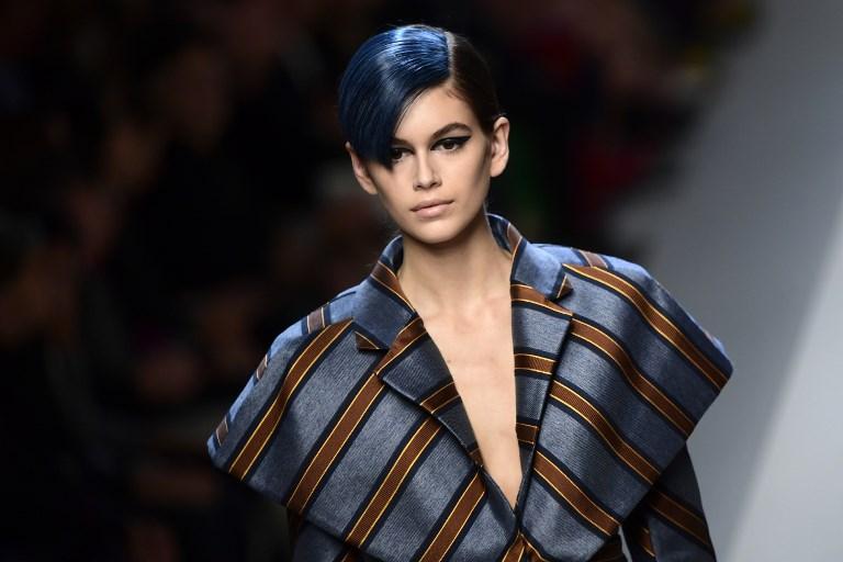 En medio de una música de jungla electrónica, las modelos, entre las que figuraban las estrellas Gigi Hadid, Kendall Jenner y Kaia Gerber (de 16 años), hija de Cindy Crawford, presentaron prendas ricas en figuras geométricas y cuadros.