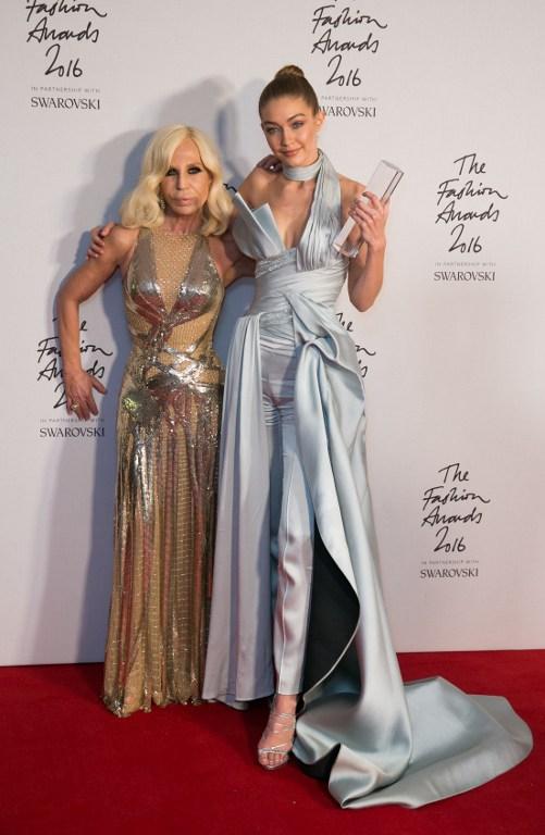 El premio se lo entregó Donatella Versace, quien además la vistió para la ocasión con un innovador diseño de enterito que contaba con una falda por detrás.