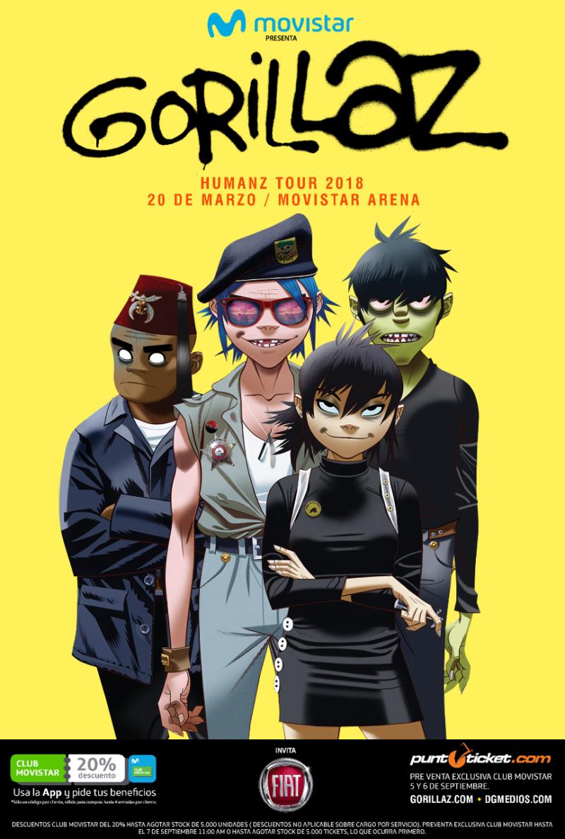 Gorillaz llega al país promocionando Humanz, su primer álbum en 7 años, y su HUMANZ WORLD TOUR 2018 que los llevará también a Argentina y Uruguay.