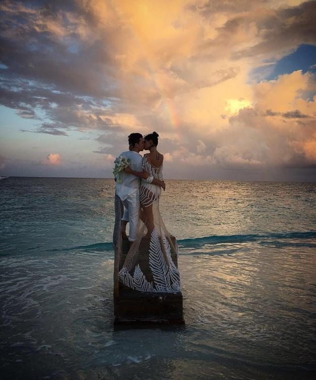 La idílica ceremonia se llevó a cabo en las Islas Maldivas, en un resory, en el que la modelo le dio el “Sí” a Diego Ferrero, vocalista de la banda NX Zero.