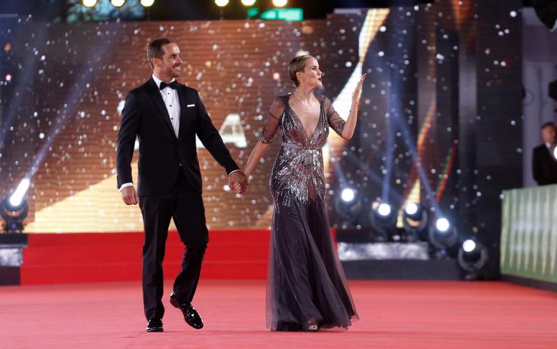 Javiera Suárez abrió la alfombra roja con espectacular vestido bordado
