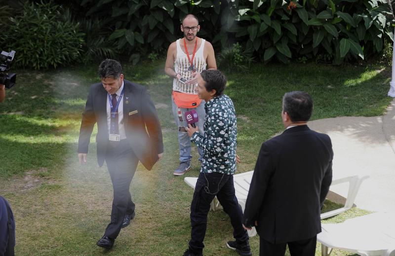 Antes de que comenzara la actividad, Karol comenzó a molestar a las personas que se encontraban en el sector de la piscina del hotel, lo cual no fue del gusto de los guardias del recinto, quienes optaron por sacarlo.