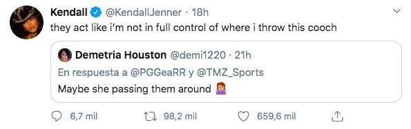 "Se creen que actúo como si no tuviera total control sobre dónde pongo mi c**o", respondió Jenner recibiendo el total apoyo de sus hermanas en la red social.