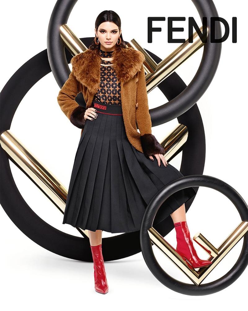 Fendi junto a Kendall Jenner lanzó sus gráficas y en ellas se aprecia a la súpermodelo mostrando botas de vinilo, pollera plisada, blusa estampada y abrigo de lana peinada con piel. Cada una de estas texturas se lleva usando durante temporadas. Casi un año se viene hablando del látex o vinilo, los pelos y las faldas tableadas...