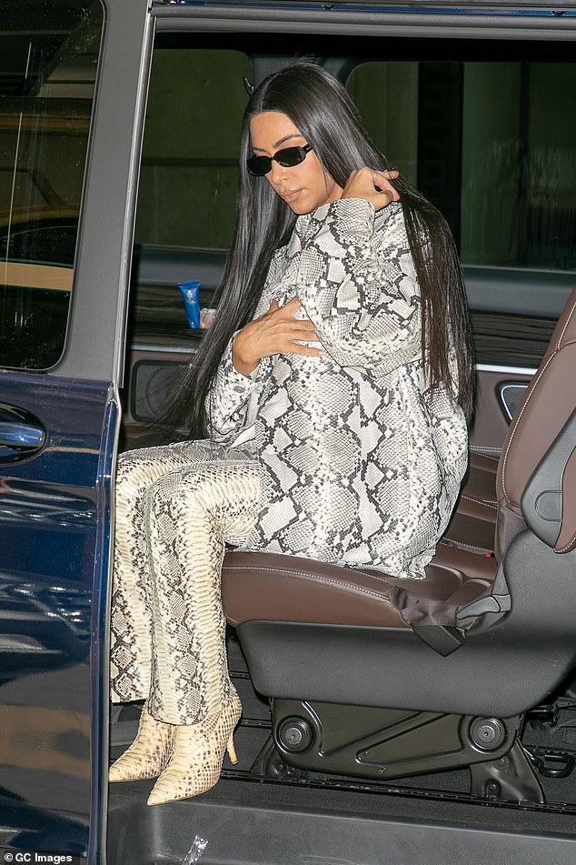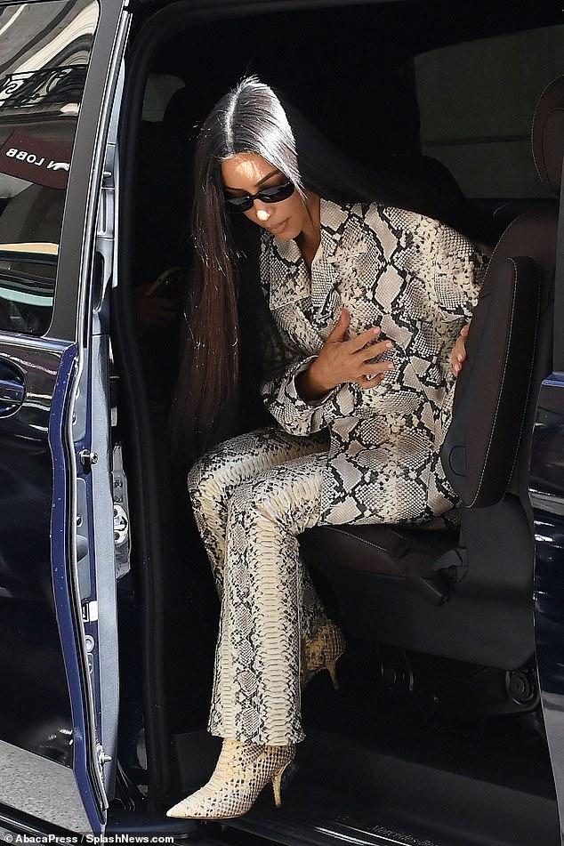 Y Kim Kardashian, conocedora de la moda, cae en la tentación y no solo compra varias piezas estampado pitón ¡si no que las usa todas a la vez!