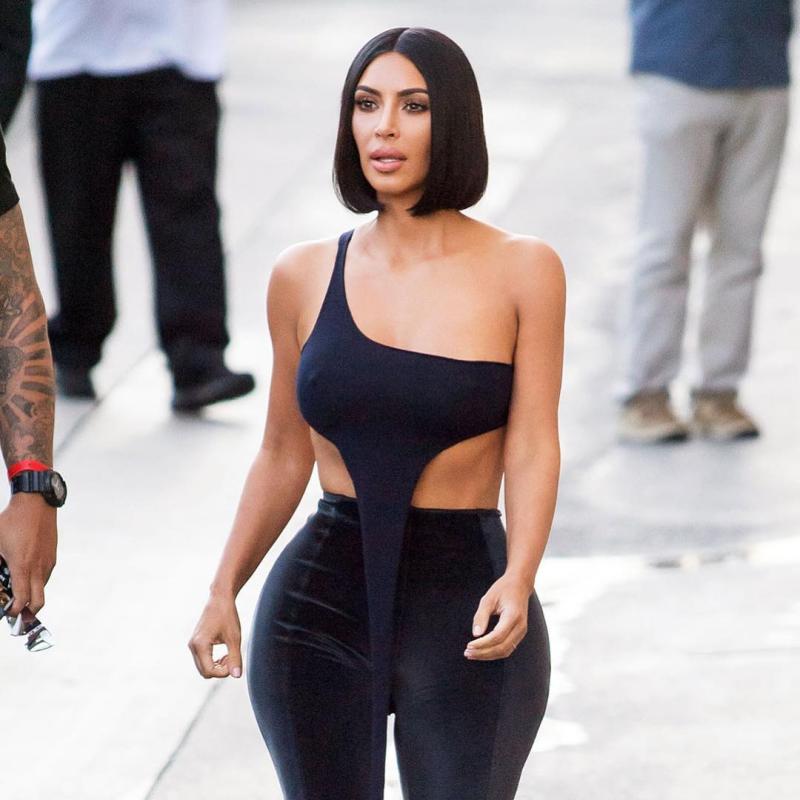 Kim Kardashian sabe innovar y esta vez consigue ser el centro de atención porque además de cortar su melena y adelgazar unos kilos se puso un body negro osado encima del pantalón... ¡tal cual!