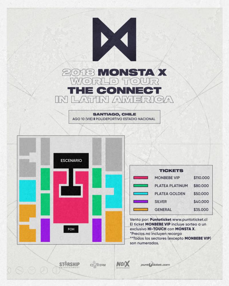 MX: ¡Hola, fans de Chile! Esto es MONSTA X. Nos tomó cerca de un año el volver a encontrarnos nuevamente con ustedes a través de esta gira mundial. Estamos muy felices de volver a verlos. Ya que nos han estado esperando, los visitaremos con grandes canciones y presentaciones. Muchísimas gracias por siempre apoyarnos y amarnos. Nos hemos preparado muy duramente para esta tour mundial para poder presentar un show perfecto. Esperamos que lo disfruten. ¡Gracias y los amamos MONBEBE!”