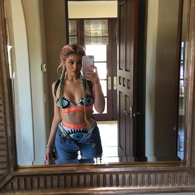 Uno de los que más llamó la atención, fue un bikini de la marca Discount Universe, que Kylie lució con unas largas trenzas en colores arcoíris.