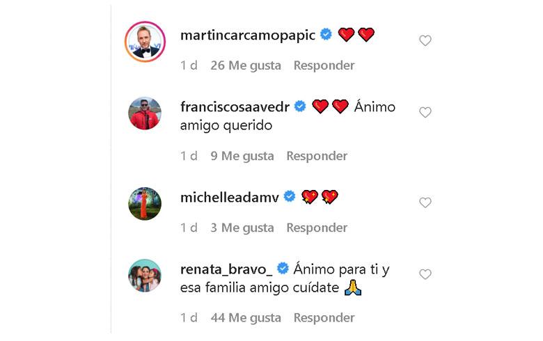 Su publicación se repletó rápidamente de mensajes de apoyo. Martín Cárcamo, Francisco Saavedra, Michelle Adam y Renata Bravo son algunos de los rostros que manifestaron su respaldo hacia el animador.
