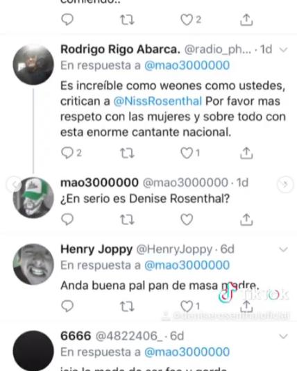 Todo comenzó con un agresivo comentario. Un hombre le dijo a Denise Rosenthal, por las redes, que estaba buena para el pan. La cantante, en vez de responder directamente optó por subir una reflexión en TikTok.