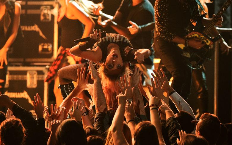 Metallica se presentó junto a Lady Gaga interpretando la canción “Moth Into Flame” sobre el escenario del Staples Center de Los Ángeles. Mientras se presentaban las llamas se encendieron detrás de los artistas, haciendo estallar el escenario y al público.