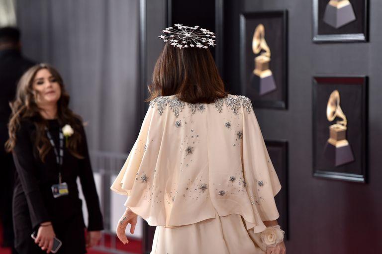 La corona, aureola, o halo, como también le han llamado a la pieza, fue el complemento perfecto para el vestido Gucci que eligió, que tenía une stiño celestial y retro.