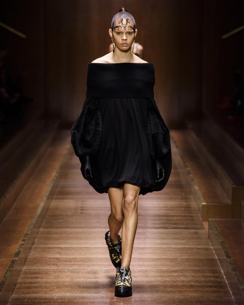El director creativo Riccardo Tisci dividió en dos las cosas. Por un lado se dejaron caer trajes masculinos con un toque sporty, vestidos negros sensuales con hombros descubiertos, mezcla de piezas entalladas y otras oversize, faldas lápiz de piel y vestidos rockeros.