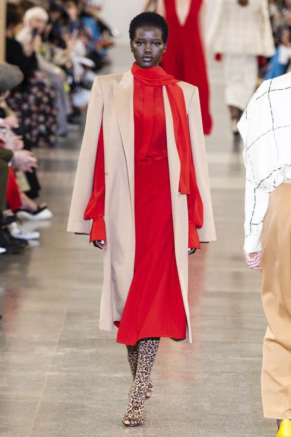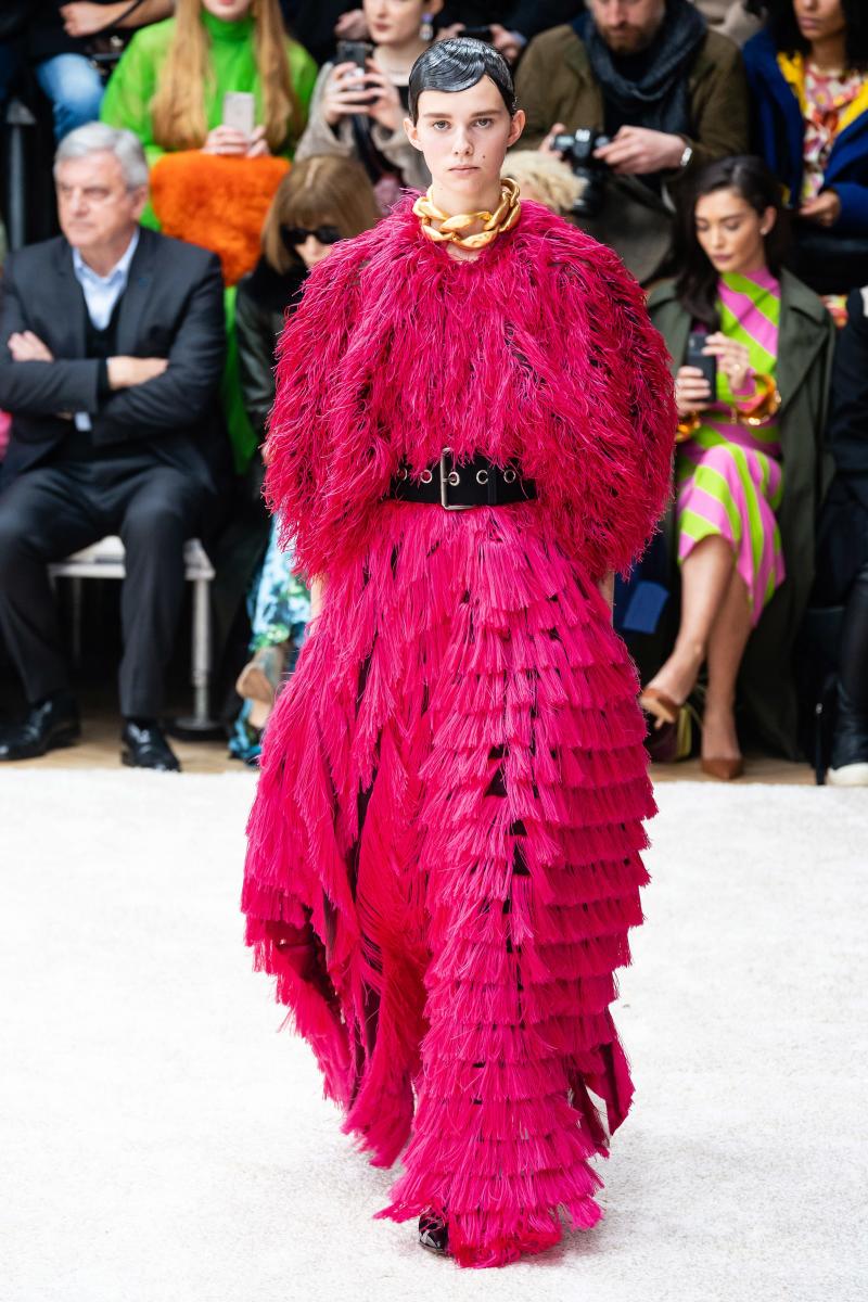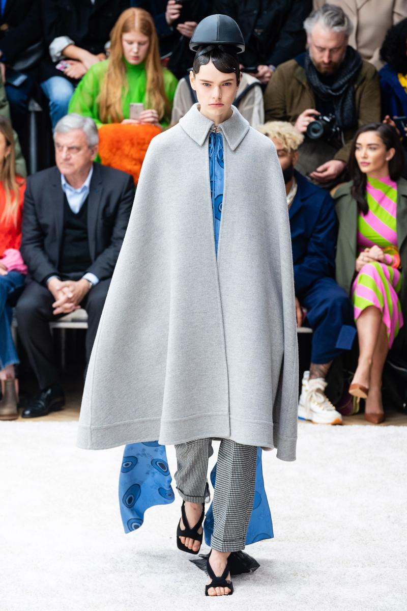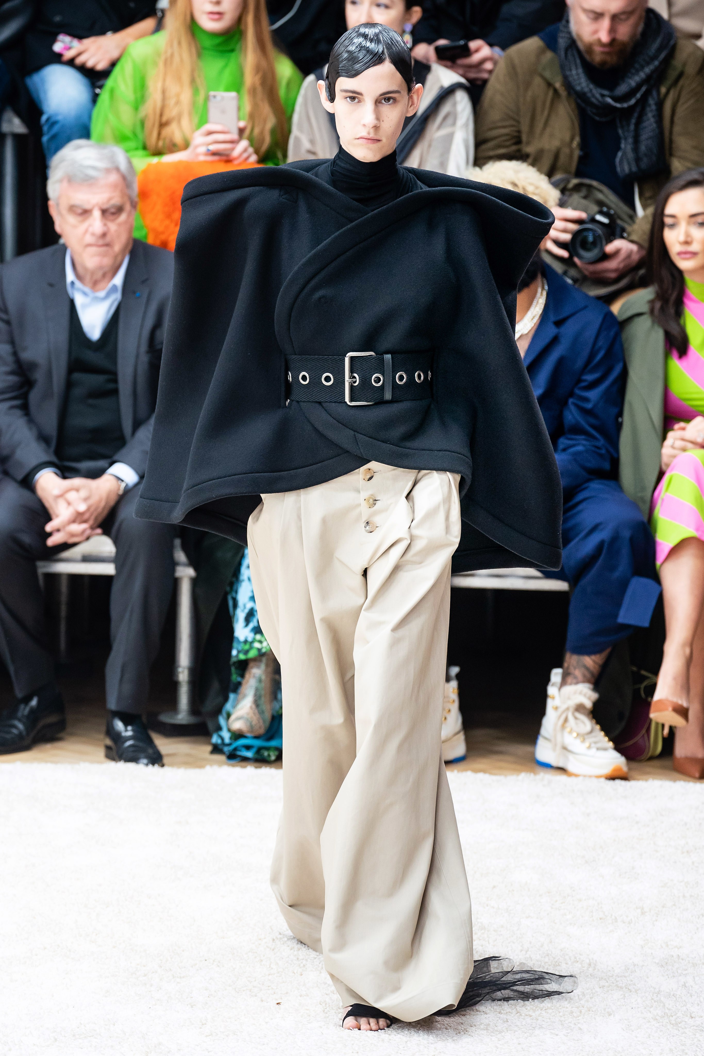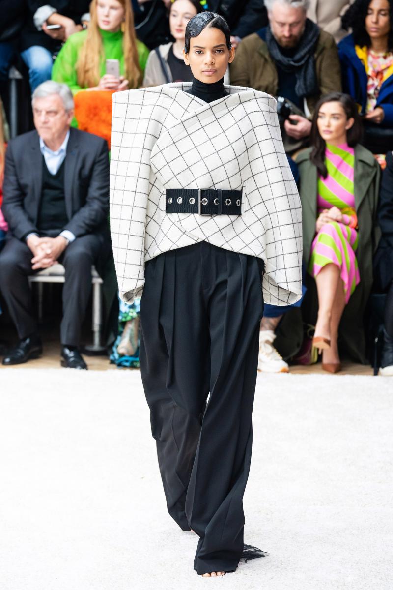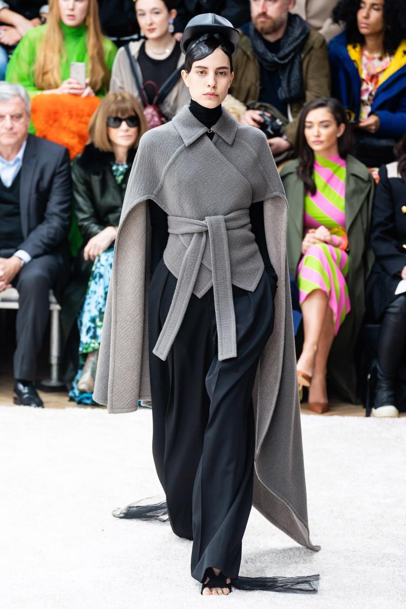 Sin duda fueron los volúmenes los protagonistas de este desfile que se basó en propuestas oversize, marcadas por prominentes hombros. Capas sobre looks formales también se dejaron ver así como la fuerte presencia de color.