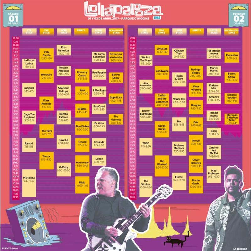 Lollapalooza 2017 revela sus horarios y anuncia cambio de artista