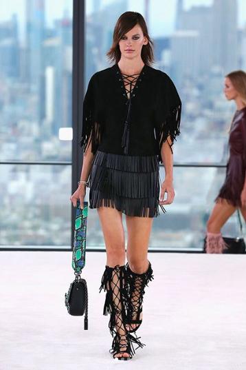 Entre las tendencias que ensalza esta colección destacan el cuero, la gamuza, los flecos y las flats.