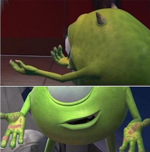 No es de Disney tal cual, pero en la escena final donde Mike le muestra las manos llena de heridas, luego no están ¿Será la misma curación mágica que usaron en Tarzán?