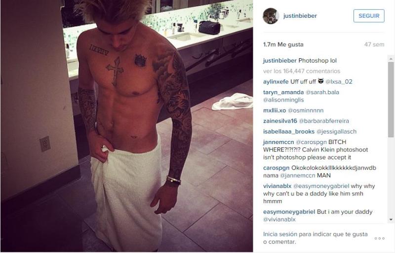 Justin estuvo (una vez más) en las noticias, pero esta vez por un comercial que hizo junto a Calvin Klein, donde se nota el uso del Photoshop para realzar sus pectorales, por ejemplo. El cantante negó el uso del programa y se rió con una foto en Instagram donde dice “Photoshop lol” Para dejar en claro que no le retocaron el cuerpo.