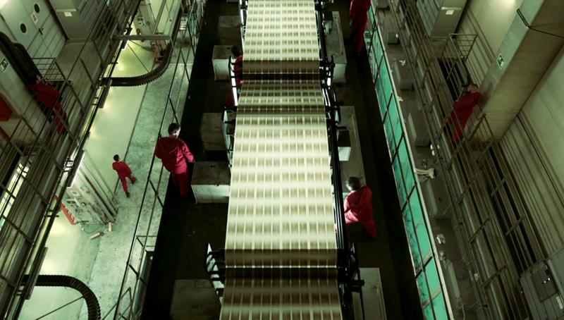 6) El interior de La Casa Nacional de Moneda y Timbre de Madrid es un set y la impresión del dinero se realizó en las rotativas del diario ABC y en ese papel.