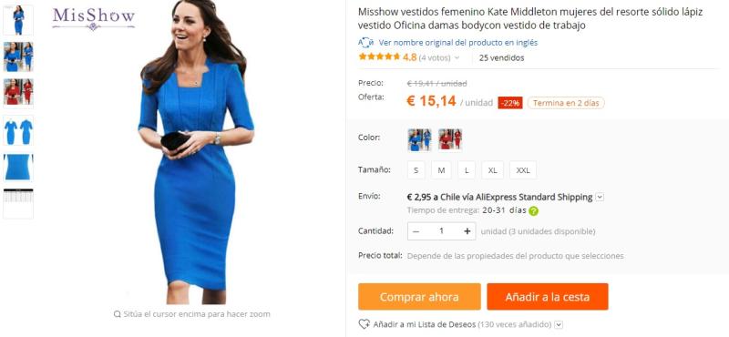 Un módico precio para parecer una duquesa de la realeza británica ¡y tienen envío a Chile!