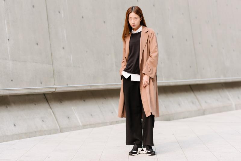 Las líneas simples en los looks vienen acompañados de comodidad: no es raro ver a las coreanas usando zapatillas urbanas.