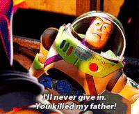 El Emperador Zorg le dice al otro Buzz Lightyear que él es su padre, reproduciendo quizás la más emblemática escena de la saga de las Galaxias, en la que Darth Vader le revela su identidad a Luke Skylwalker.