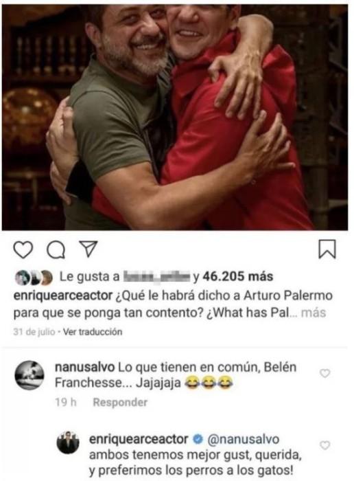 El cibernauta hizo clara alusión a la relación que ambos tuvieron en el pasado con la actriz argentina, por lo que frente a esto, el hombre tras “Arturo Román” respondió: “¡Ambos tenemos mejor gusto, querida, y preferimos los perros a los gatos!”.