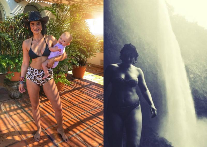 Para ello, la actriz subió dos fotos en bikini a su cuenta de Instagram, la primera de ellas a siete meses de dar a luz y la otra a cuatro meses.