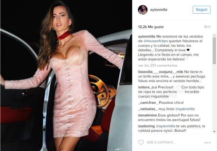 Aylén Milla vuelve a estar en el ojo del huracán luego que publicara dos fotos en Instagram en las que luce un vestido rosa pastel, ceñido y escotado.